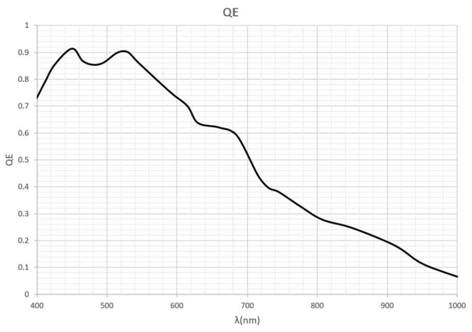 | 读出噪声 | 高灵敏度模式: 3.5e- / 标准模式: 11e- | |